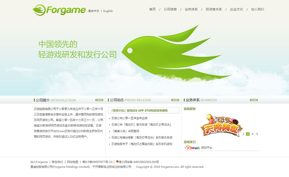云游控股于2020-10-11被0702投稿网收录,网站相关信息来自互联网或网友分享!由于(云游控股)网站内容动态属性,时刻在变动,本站无法保证(云游控股)网站内容真实可靠!请大家查阅时,谨慎选择、自辩真伪,感谢您的理解与支持。如果您在访问(云游控股)时发现:网址失效、或网站存在非法等相关内容,请及时联系我们,我们会第一时间处理。