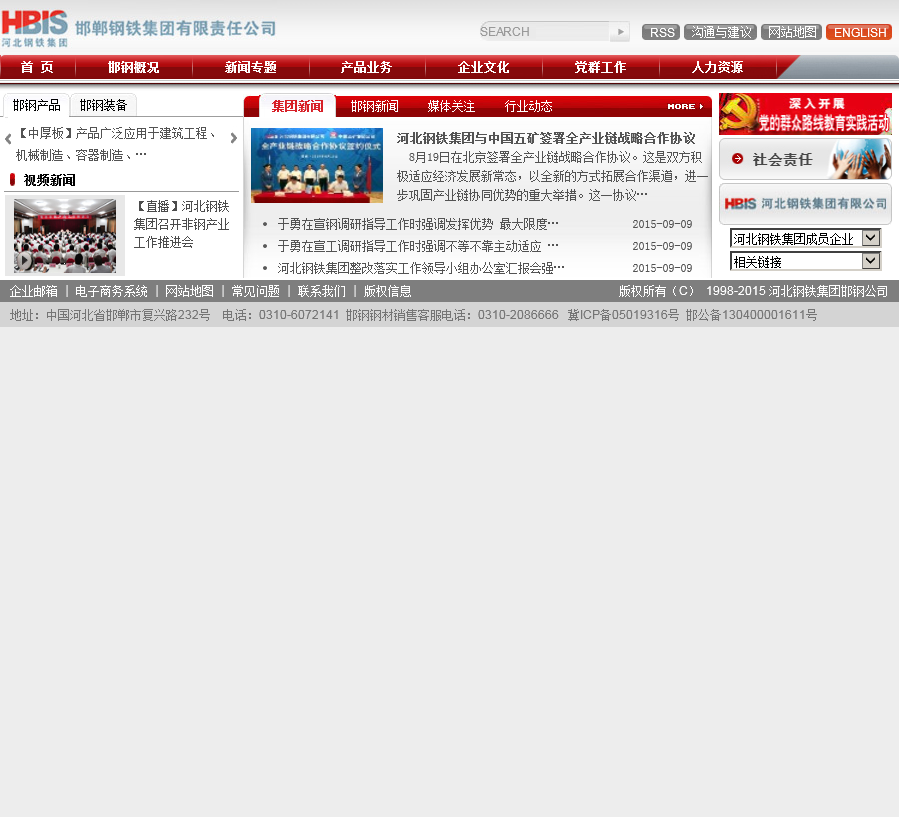 河北钢铁集团邯钢公司于2020-10-13被0702投稿网收录,网站相关信息来自互联网或网友分享!由于(河北钢铁集团邯钢公司)网站内容动态属性,时刻在变动,本站无法保证(河北钢铁集团邯钢公司)网站内容真实可靠!请大家查阅时,谨慎选择、自辩真伪,感谢您的理解与支持。如果您在访问(河北钢铁集团邯钢公司)时发现:网址失效、或网站存在非法等相关内容,请及时联系我们,我们会第一时间处理。