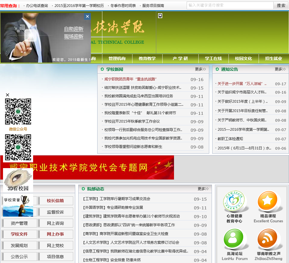 咸宁职业技术学院于2020-10-13被0702投稿网收录,网站相关信息来自互联网或网友分享!由于(咸宁职业技术学院)网站内容动态属性,时刻在变动,本站无法保证(咸宁职业技术学院)网站内容真实可靠!请大家查阅时,谨慎选择、自辩真伪,感谢您的理解与支持。如果您在访问(咸宁职业技术学院)时发现:网址失效、或网站存在非法等相关内容,请及时联系我们,我们会第一时间处理。