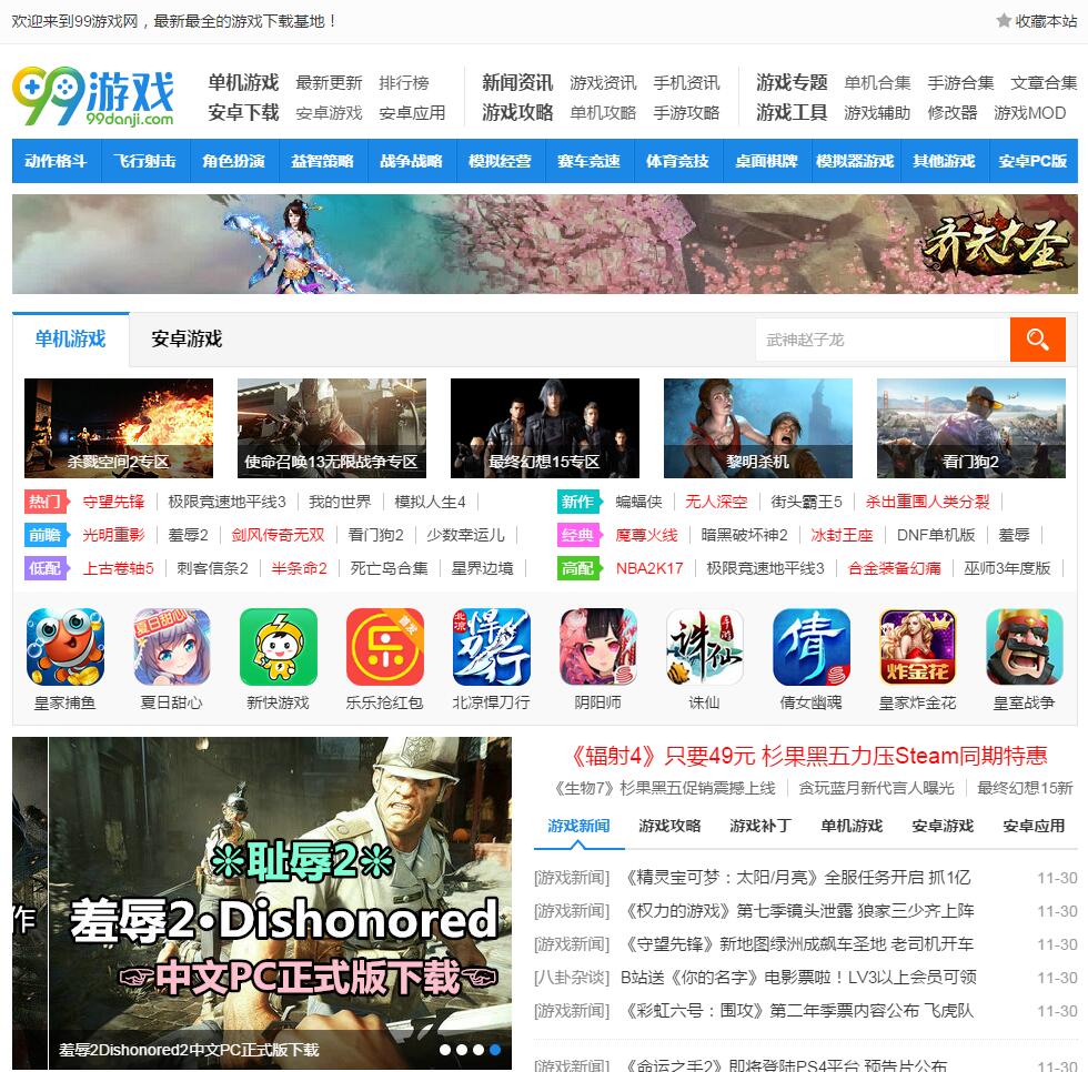 - 网站名称:99单机游戏网