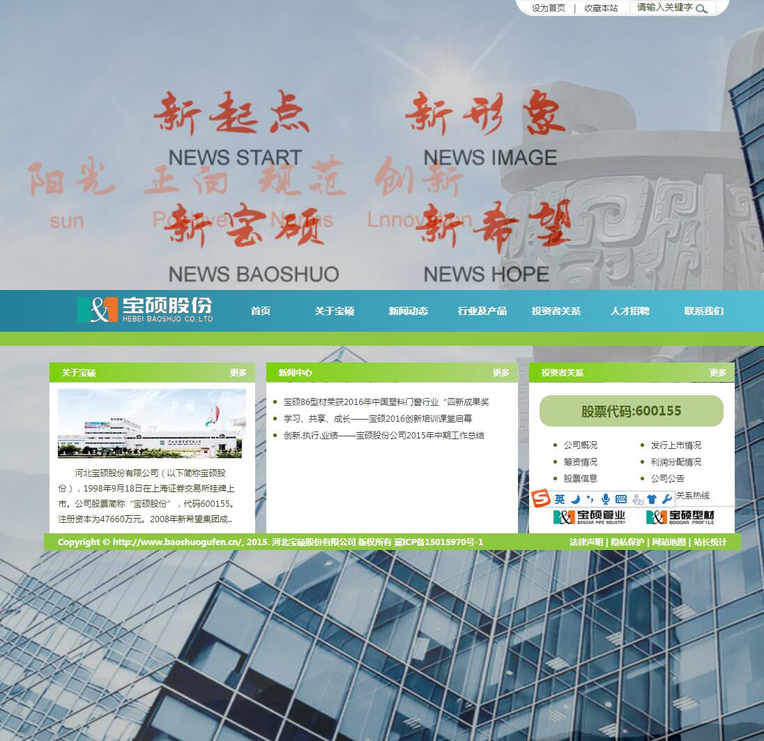 宝硕股份于2020-05-26被0702投稿网收录,网站相关信息来自互联网或网友分享!由于(宝硕股份)网站内容动态属性,时刻在变动,本站无法保证(宝硕股份)网站内容真实可靠!请大家查阅时,谨慎选择、自辩真伪,感谢您的理解与支持。如果您在访问(宝硕股份)时发现:网址失效、或网站存在非法等相关内容,请及时联系我们,我们会第一时间处理。