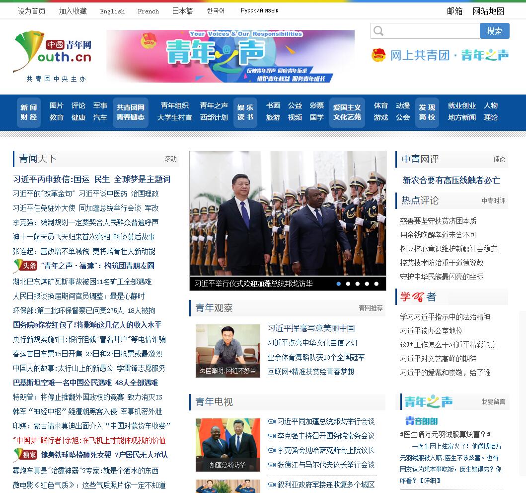 中国青年网于2020-05-26被0702投稿网收录,网站相关信息来自互联网或网友分享!由于(中国青年网)网站内容动态属性,时刻在变动,本站无法保证(中国青年网)网站内容真实可靠!请大家查阅时,谨慎选择、自辩真伪,感谢您的理解与支持。如果您在访问(中国青年网)时发现:网址失效、或网站存在非法等相关内容,请及时联系我们,我们会第一时间处理。