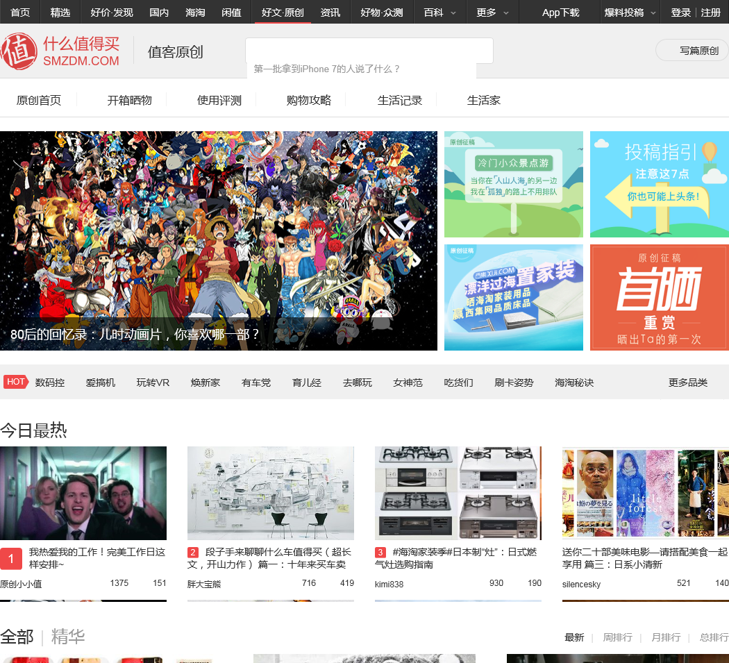 什么值得买的值客原创频道,由晒物广场和经验盒子合并而来,新值客原创频道分为开箱晒物、使用评测、购物攻略、消费知识、摄影旅游、生活记录等六个板块,是众多值友分享消费主张、获取消费经验知识的互动频道。