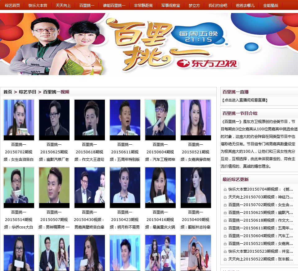 东方卫视百里挑一播出时间是每周五21:10分,节目主持人为骆新和倪琳等。本栏目为您提供东方卫视百里挑一每期视频录像在线观看以及嘉宾介绍,如果你喜欢,就快快收藏吧。
