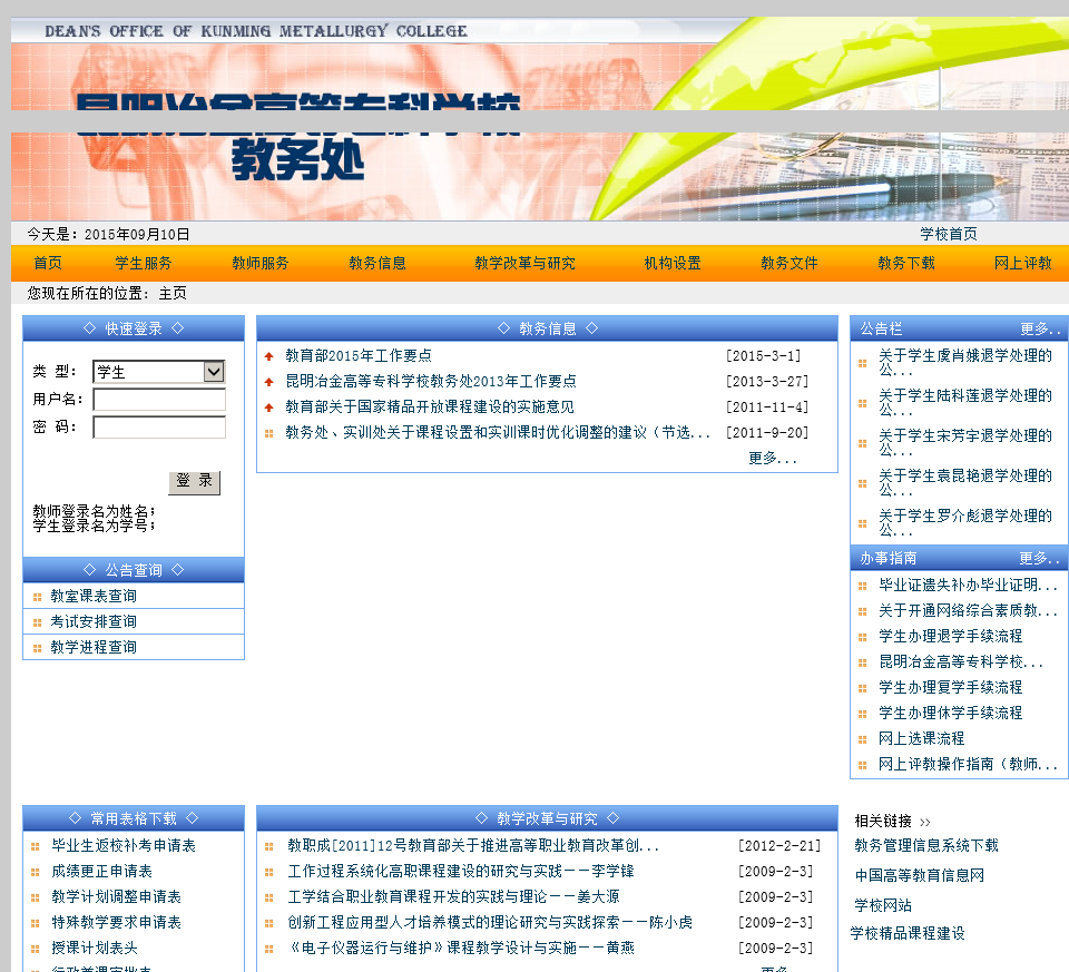 当前位置:主页 > 网站目录 > 昆明冶金高等专科学校教务处jwc.kmyz.edu.cn
