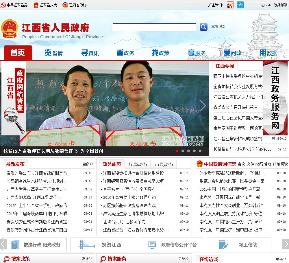中国江西省人民政府于2020-05-28被0702投稿网收录,网站相关信息来自互联网或网友分享!由于(中国江西省人民政府)网站内容动态属性,时刻在变动,本站无法保证(中国江西省人民政府)网站内容真实可靠!请大家查阅时,谨慎选择、自辩真伪,感谢您的理解与支持。如果您在访问(中国江西省人民政府)时发现:网址失效、或网站存在非法等相关内容,请及时联系我们,我们会第一时间处理。