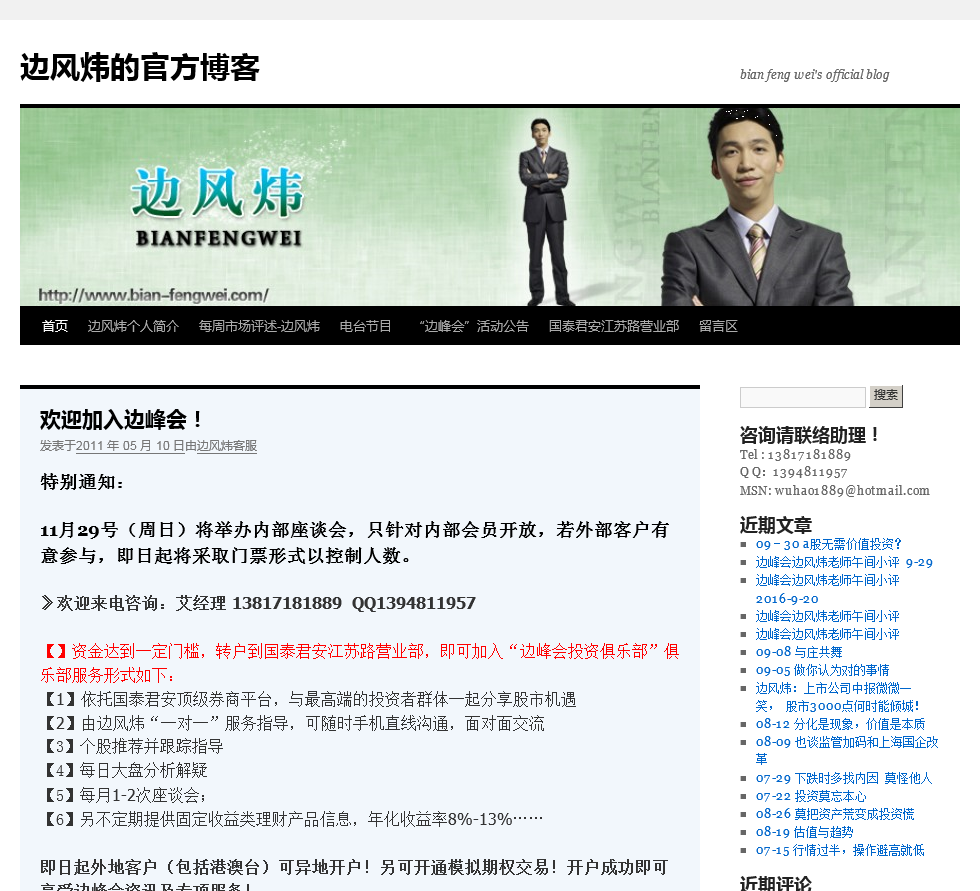 边风炜的官方博客于2020-05-29被0702投稿网收录,网站相关信息来自互联网或网友分享!由于(边风炜的官方博客)网站内容动态属性,时刻在变动,本站无法保证(边风炜的官方博客)网站内容真实可靠!请大家查阅时,谨慎选择、自辩真伪,感谢您的理解与支持。如果您在访问(边风炜的官方博客)时发现:网址失效、或网站存在非法等相关内容,请及时联系我们,我们会第一时间处理。