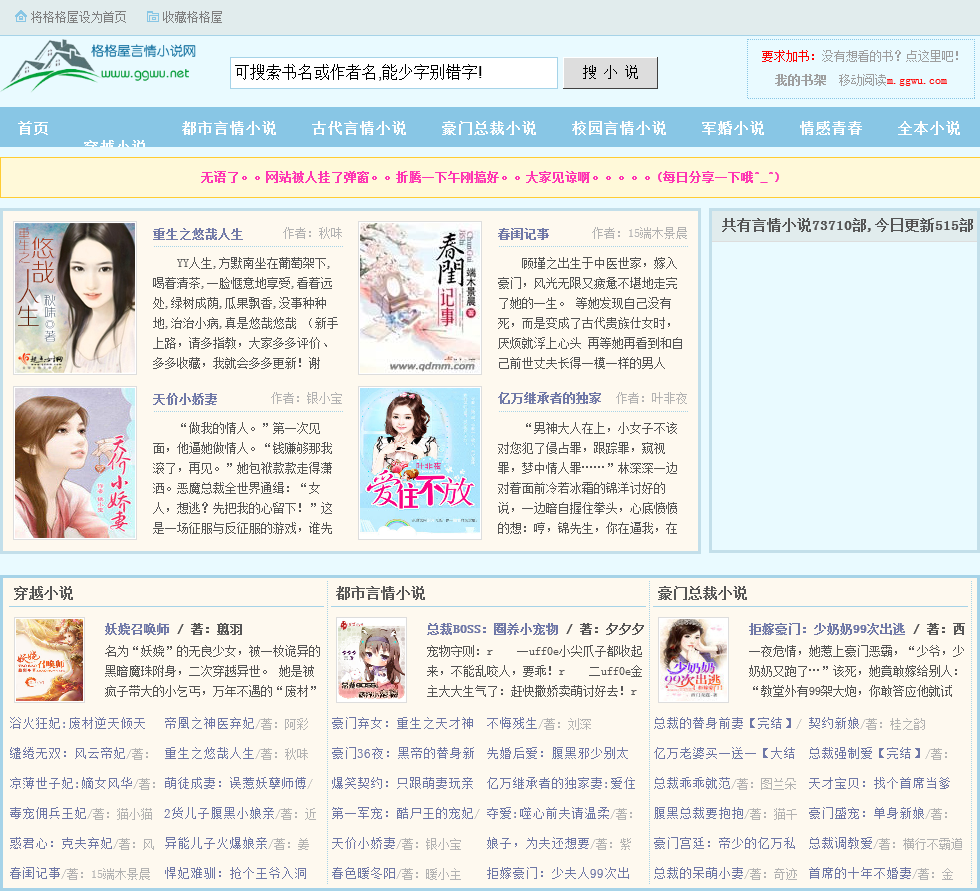 格格屋言情小说网于2020-05-30被0702投稿网收录,网站相关信息来自互联网或网友分享!由于(格格屋言情小说网)网站内容动态属性,时刻在变动,本站无法保证(格格屋言情小说网)网站内容真实可靠!请大家查阅时,谨慎选择、自辩真伪,感谢您的理解与支持。如果您在访问(格格屋言情小说网)时发现:网址失效、或网站存在非法等相关内容,请及时联系我们,我们会第一时间处理。