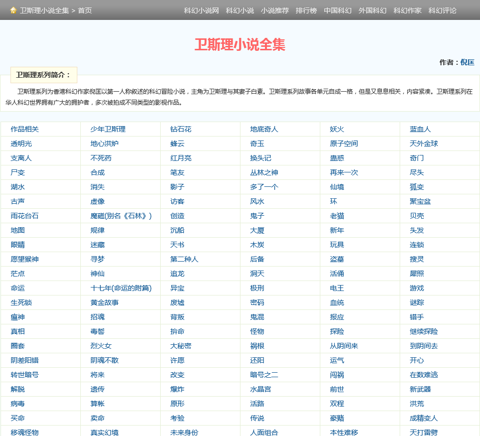 卫斯理小说全集于2020-05-30被0702投稿网收录,网站相关信息来自互联网或网友分享!由于(卫斯理小说全集)网站内容动态属性,时刻在变动,本站无法保证(卫斯理小说全集)网站内容真实可靠!请大家查阅时,谨慎选择、自辩真伪,感谢您的理解与支持。如果您在访问(卫斯理小说全集)时发现:网址失效、或网站存在非法等相关内容,请及时联系我们,我们会第一时间处理。
