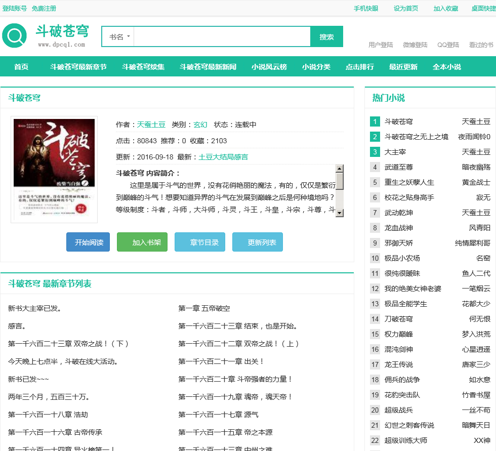 - 网站名称:斗破苍穹小说网