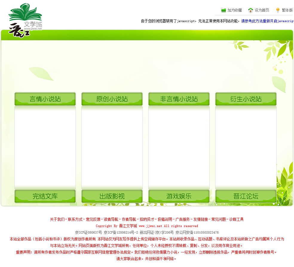 晋江文学城言情小说于2020-06-01被0702投稿网收录,网站相关信息来自互联网或网友分享!由于(晋江文学城言情小说)网站内容动态属性,时刻在变动,本站无法保证(晋江文学城言情小说)网站内容真实可靠!请大家查阅时,谨慎选择、自辩真伪,感谢您的理解与支持。如果您在访问(晋江文学城言情小说)时发现:网址失效、或网站存在非法等相关内容,请及时联系我们,我们会第一时间处理。
