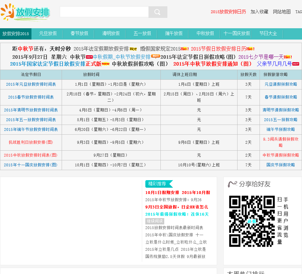 - 网站名称:放假安排
