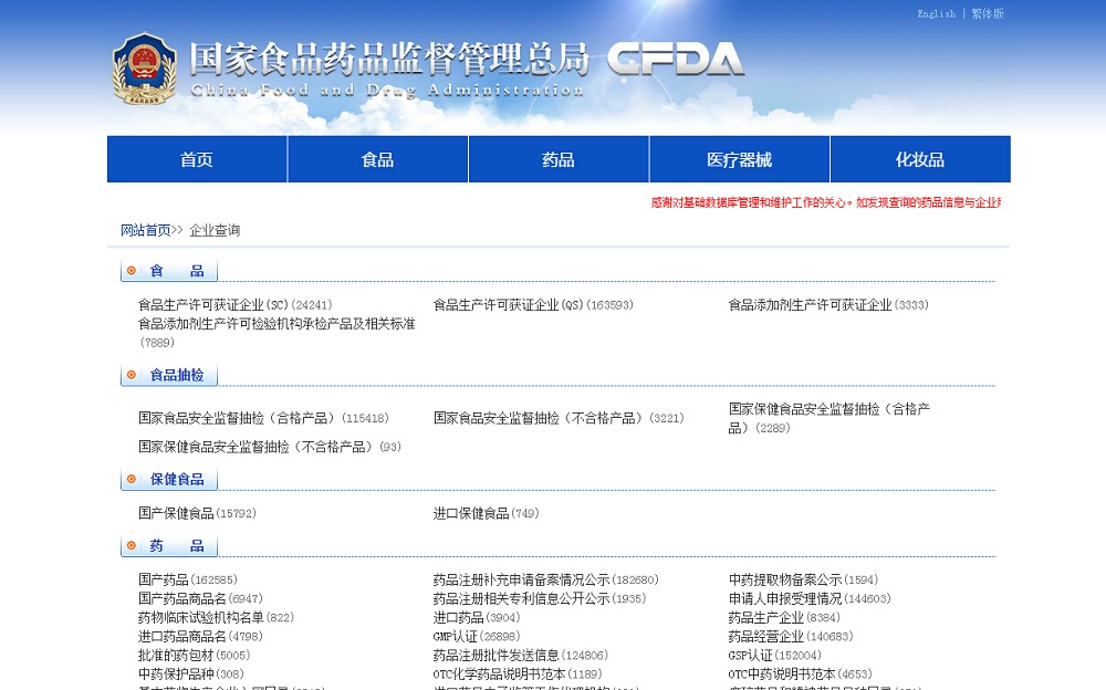 国家食品药品监督管理局数据查询