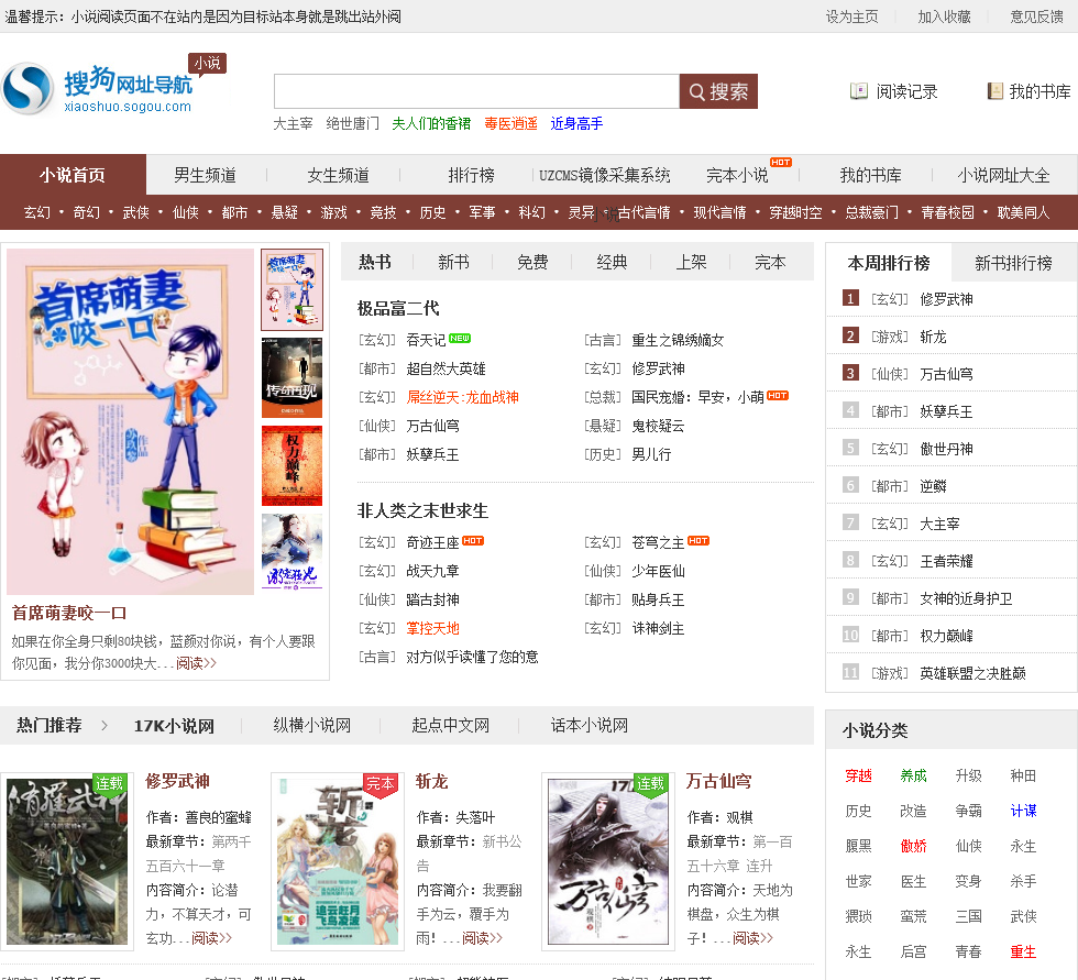UZCMS免费小说网频道汇聚众多知名小说网站好看的小说作品,提供热门小说排行榜推荐,更多言情小说,穿越小说和玄幻小说等供您免费阅读,找小说首选UZCMS免费小说网大全!
