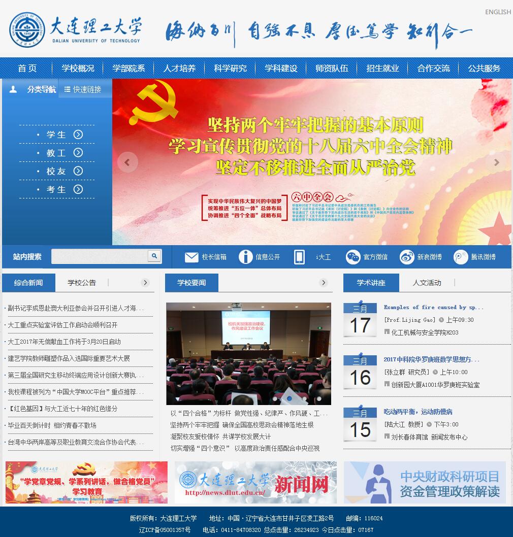 大连理工大学于2020-06-05被0702投稿网收录,网站相关信息来自互联网或网友分享!由于(大连理工大学)网站内容动态属性,时刻在变动,本站无法保证(大连理工大学)网站内容真实可靠!请大家查阅时,谨慎选择、自辩真伪,感谢您的理解与支持。如果您在访问(大连理工大学)时发现:网址失效、或网站存在非法等相关内容,请及时联系我们,我们会第一时间处理。