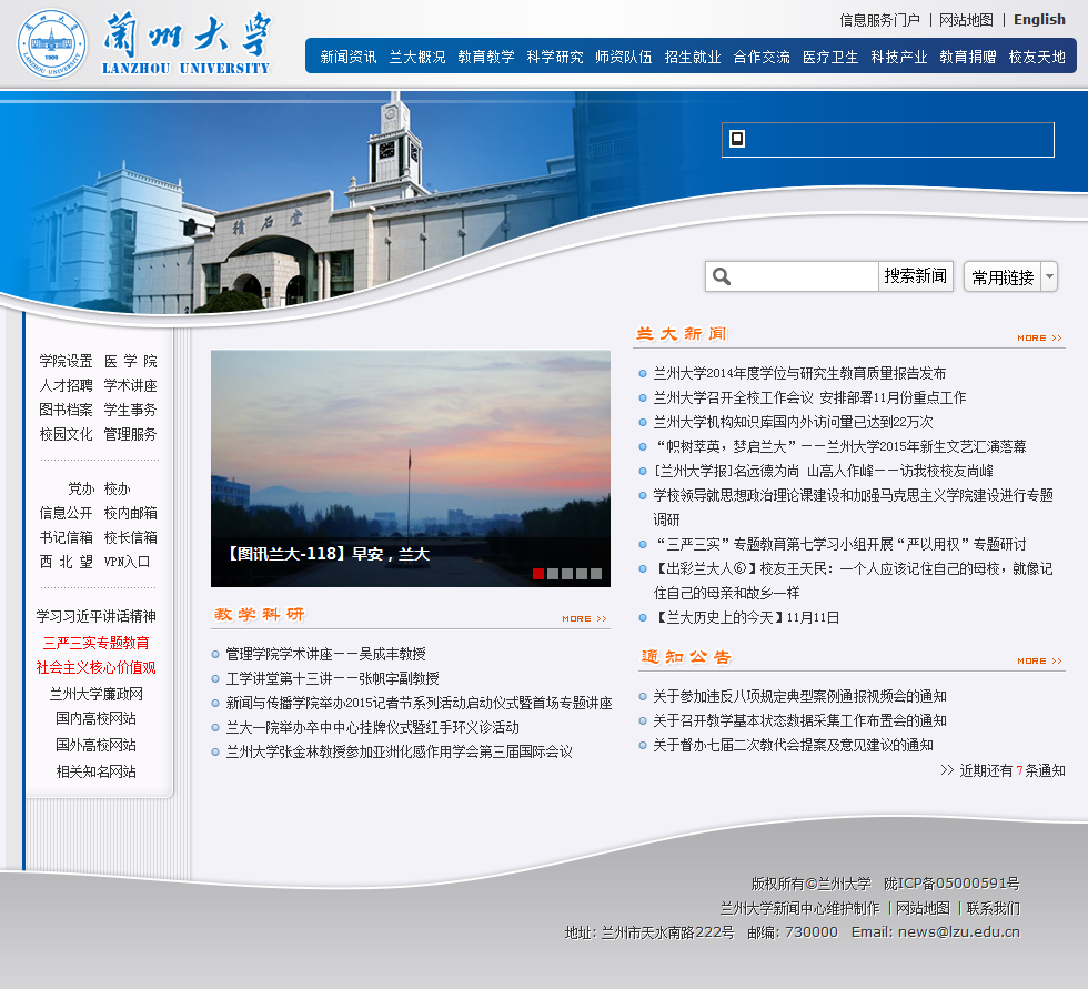 兰州大学于2020-06-09被0702投稿网收录,网站相关信息来自互联网或网友分享!由于(兰州大学)网站内容动态属性,时刻在变动,本站无法保证(兰州大学)网站内容真实可靠!请大家查阅时,谨慎选择、自辩真伪,感谢您的理解与支持。如果您在访问(兰州大学)时发现:网址失效、或网站存在非法等相关内容,请及时联系我们,我们会第一时间处理。