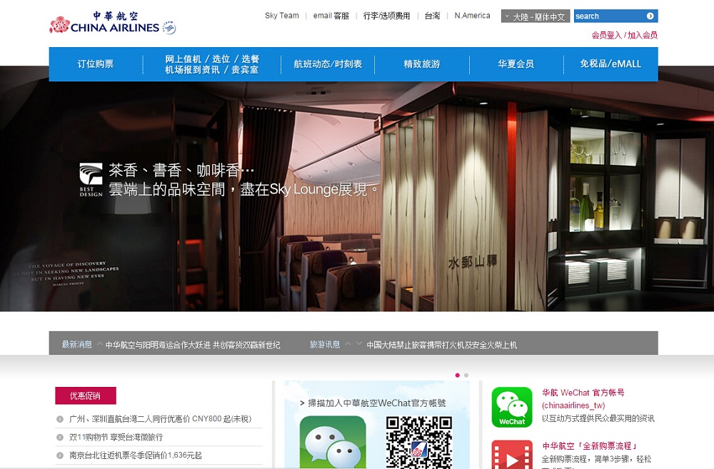 中華航空公司于2020-06-09被0702投稿网收录,网站相关信息来自互联网或网友分享!由于(中華航空公司)网站内容动态属性,时刻在变动,本站无法保证(中華航空公司)网站内容真实可靠!请大家查阅时,谨慎选择、自辩真伪,感谢您的理解与支持。如果您在访问(中華航空公司)时发现:网址失效、或网站存在非法等相关内容,请及时联系我们,我们会第一时间处理。