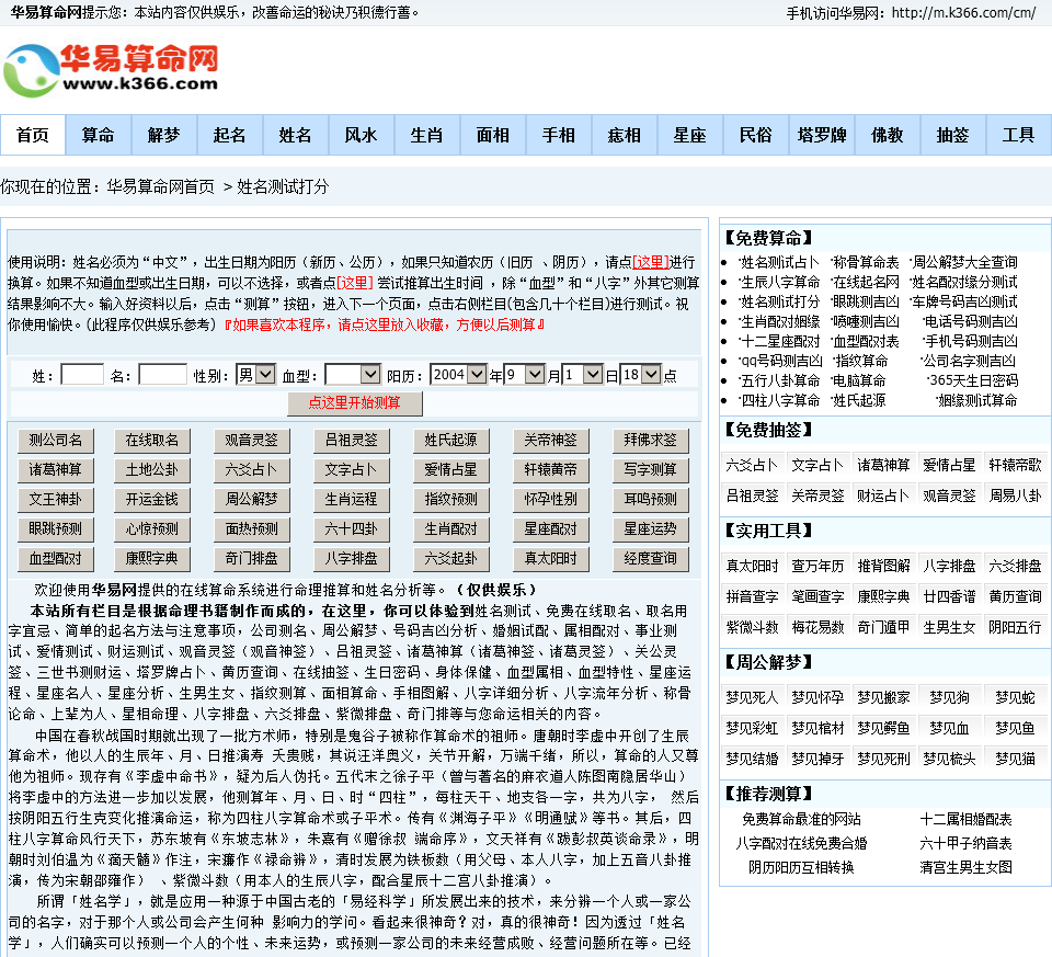 华易算命网免费姓名测试打分