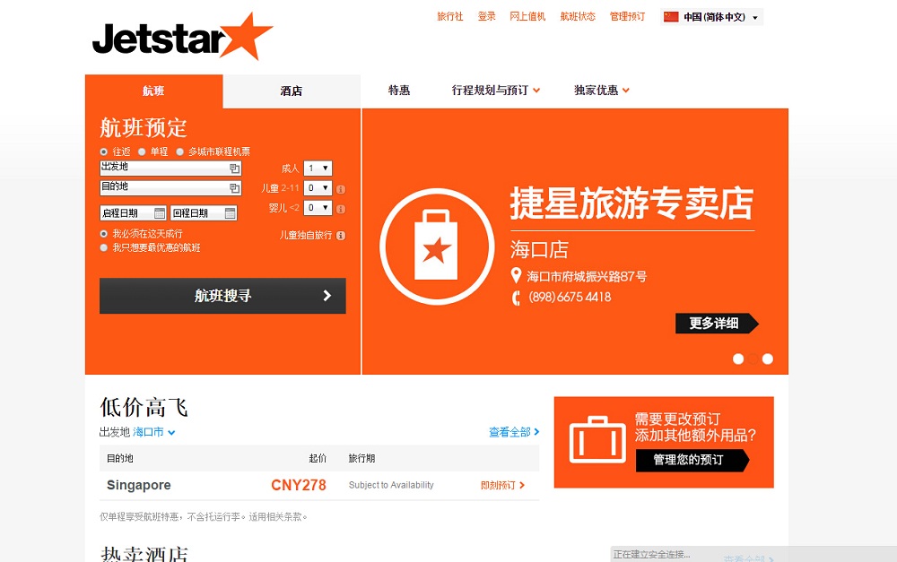 - 网站地址:www.jetstar.com