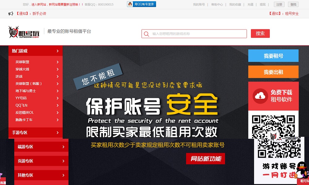 - 网站名称:租号玩