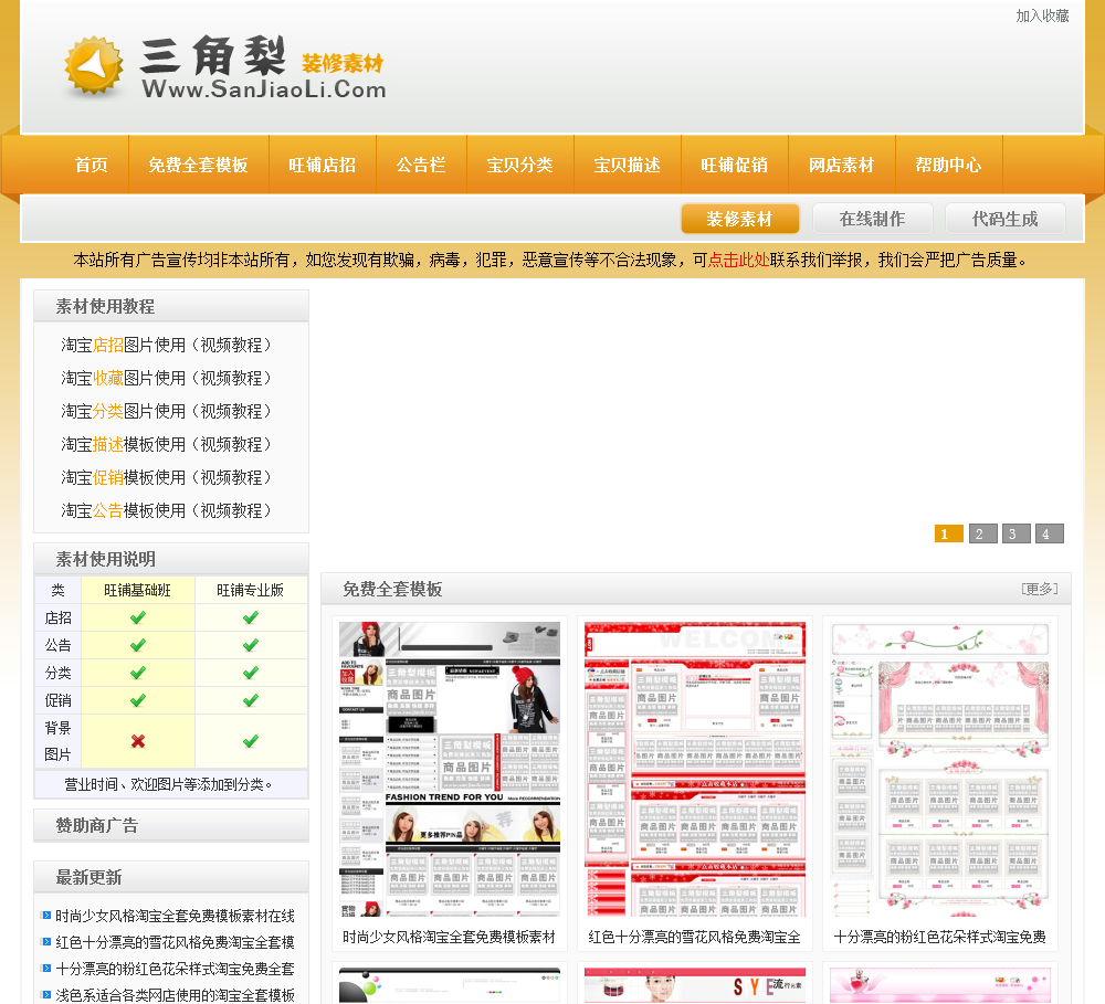 我们提供免费的淘宝装修素材。包括 旺铺店招模板、公告栏模板、宝贝分类模板、宝贝描述模板、旺铺促销模板等。