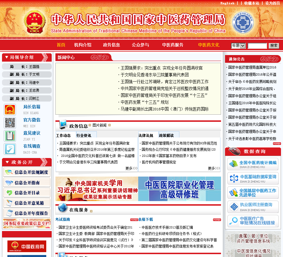 - 网站名称:国家中医药管理局