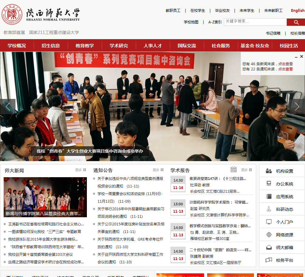 陕西师范大学于2020-06-11被0702投稿网收录,网站相关信息来自互联网或网友分享!由于(陕西师范大学)网站内容动态属性,时刻在变动,本站无法保证(陕西师范大学)网站内容真实可靠!请大家查阅时,谨慎选择、自辩真伪,感谢您的理解与支持。如果您在访问(陕西师范大学)时发现:网址失效、或网站存在非法等相关内容,请及时联系我们,我们会第一时间处理。