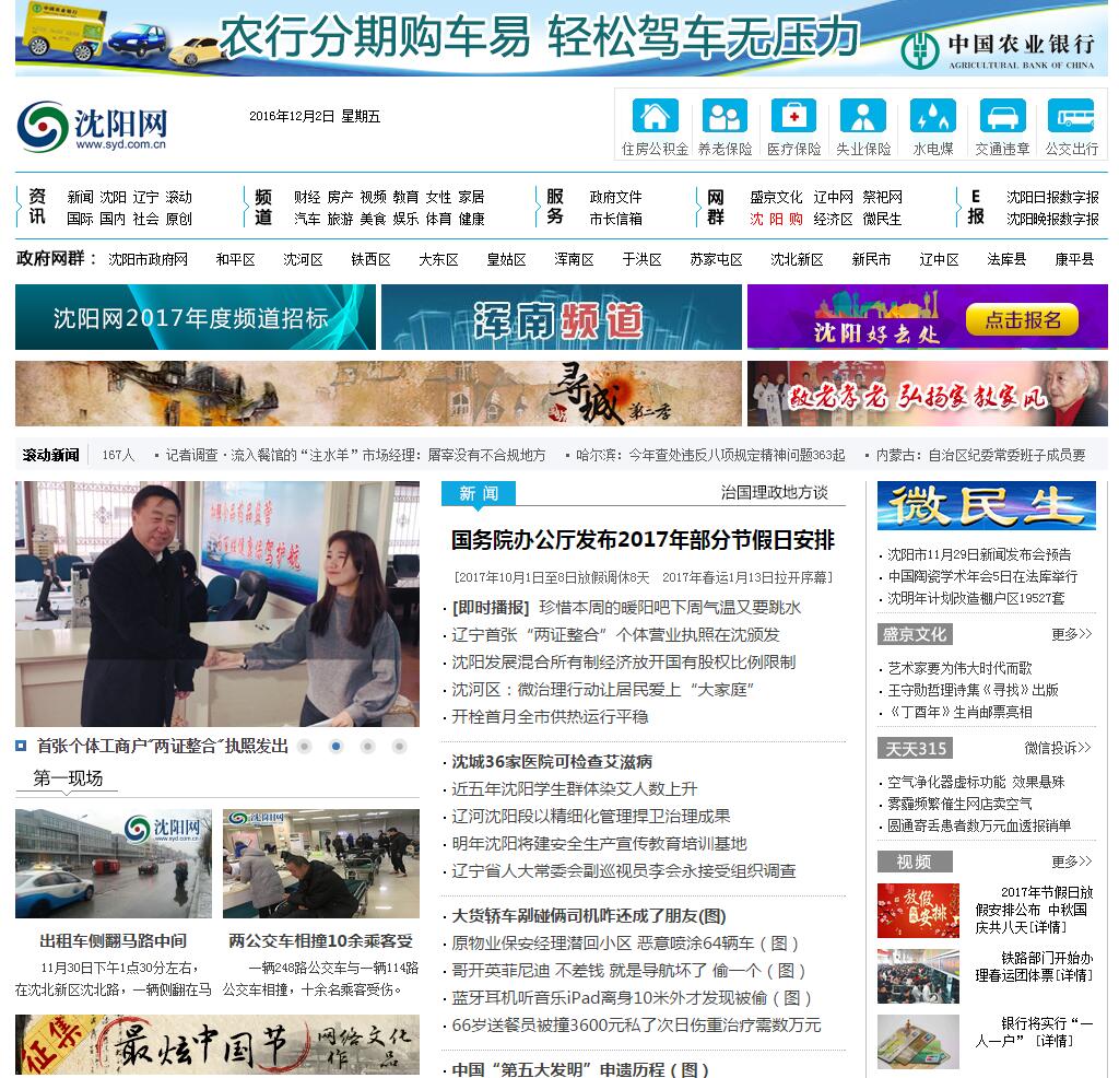 沈阳网(www.syd.com.cn),沈阳日报报业集团出品,是沈阳具有影响力的新闻门户网站。