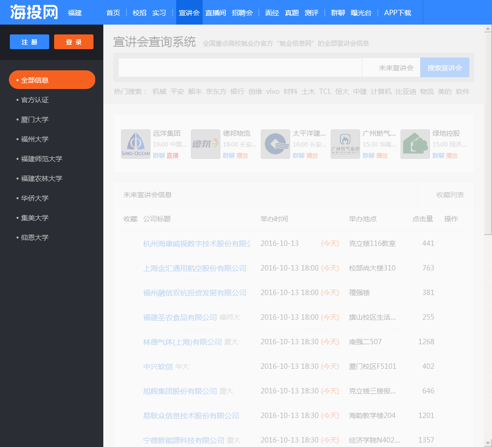 海投网宣讲会查询系统于2020-06-11被0702投稿网收录,网站相关信息来自互联网或网友分享!由于(海投网宣讲会查询系统)网站内容动态属性,时刻在变动,本站无法保证(海投网宣讲会查询系统)网站内容真实可靠!请大家查阅时,谨慎选择、自辩真伪,感谢您的理解与支持。如果您在访问(海投网宣讲会查询系统)时发现:网址失效、或网站存在非法等相关内容,请及时联系我们,我们会第一时间处理。