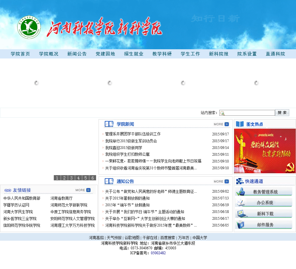 河南科技学院新科学院于2020-06-11被0702投稿网收录,网站相关信息来自互联网或网友分享!由于(河南科技学院新科学院)网站内容动态属性,时刻在变动,本站无法保证(河南科技学院新科学院)网站内容真实可靠!请大家查阅时,谨慎选择、自辩真伪,感谢您的理解与支持。如果您在访问(河南科技学院新科学院)时发现:网址失效、或网站存在非法等相关内容,请及时联系我们,我们会第一时间处理。