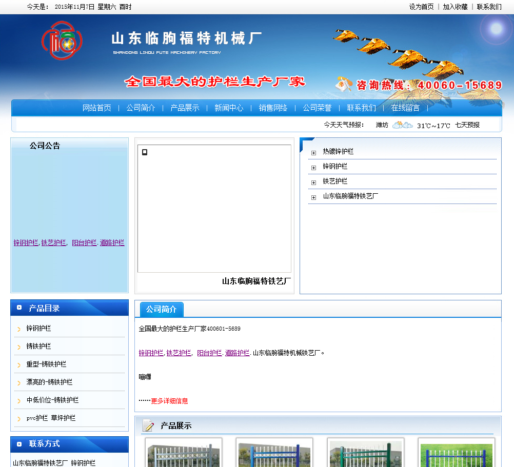 山东临朐福特护栏厂于2020-06-13被0702投稿网收录,网站相关信息来自互联网或网友分享!由于(山东临朐福特护栏厂)网站内容动态属性,时刻在变动,本站无法保证(山东临朐福特护栏厂)网站内容真实可靠!请大家查阅时,谨慎选择、自辩真伪,感谢您的理解与支持。如果您在访问(山东临朐福特护栏厂)时发现:网址失效、或网站存在非法等相关内容,请及时联系我们,我们会第一时间处理。