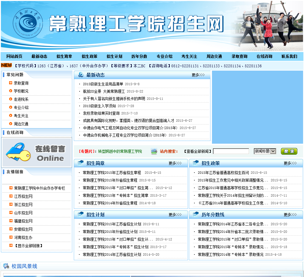 常熟理工学院招生网于2020-06-13被0702投稿网收录,网站相关信息来自互联网或网友分享!由于(常熟理工学院招生网)网站内容动态属性,时刻在变动,本站无法保证(常熟理工学院招生网)网站内容真实可靠!请大家查阅时,谨慎选择、自辩真伪,感谢您的理解与支持。如果您在访问(常熟理工学院招生网)时发现:网址失效、或网站存在非法等相关内容,请及时联系我们,我们会第一时间处理。