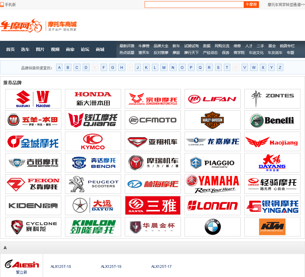 牛摩网摩托车品牌大全