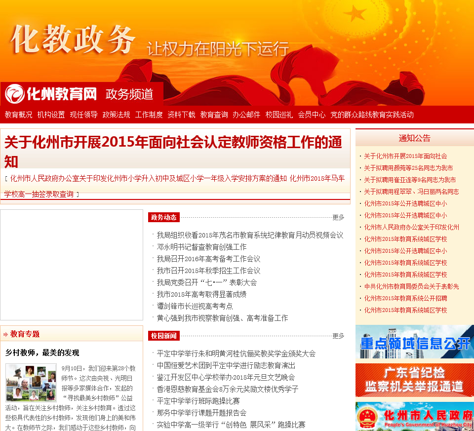 - 网站名称:化州教育网政务频道