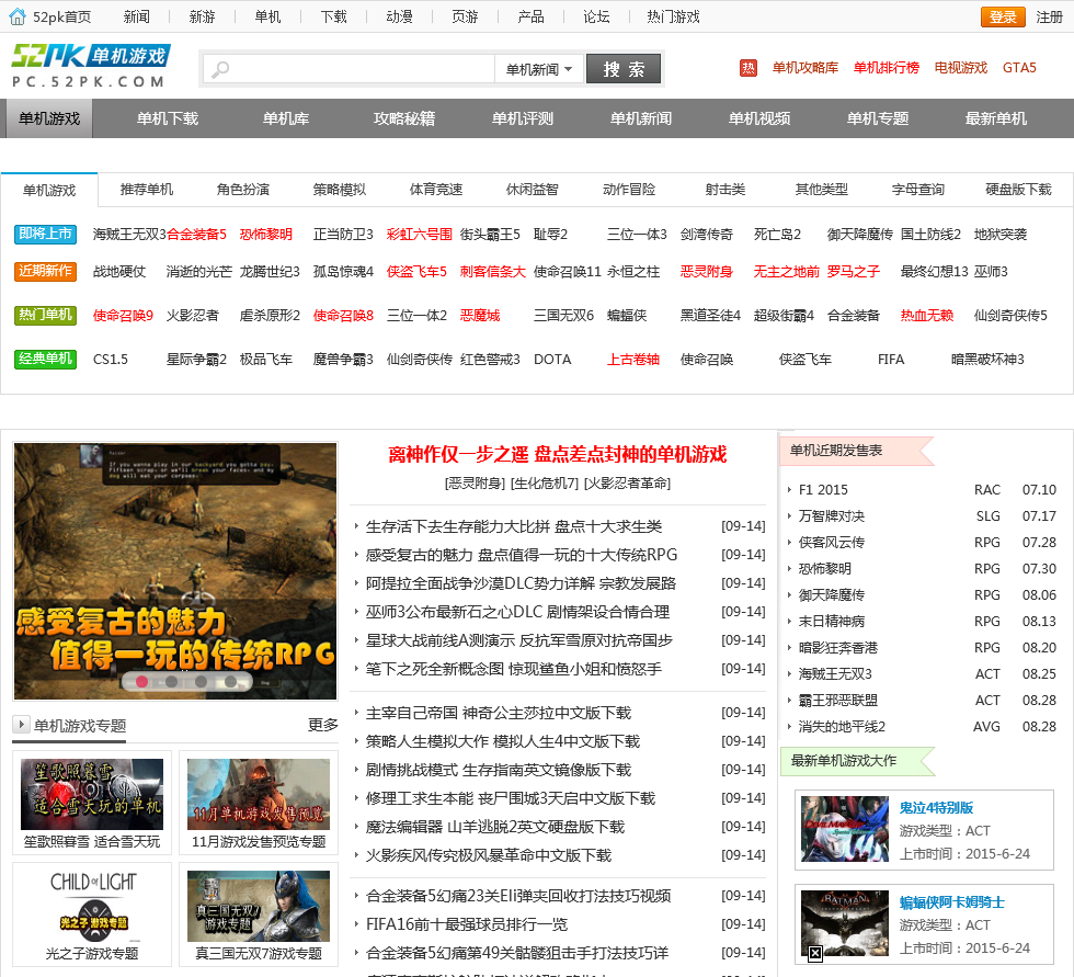 - 网站名称:52PK单机游戏
