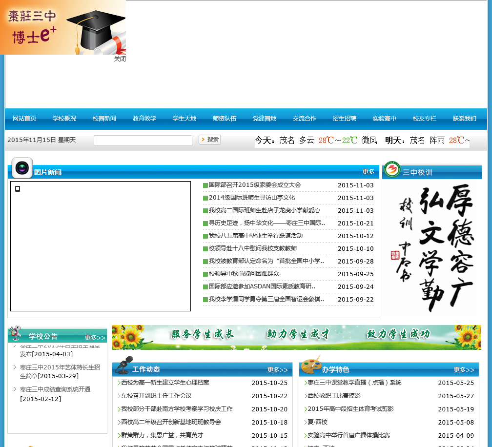 山东枣庄第三中学于2020-06-15被0702投稿网收录,网站相关信息来自互联网或网友分享!由于(山东枣庄第三中学)网站内容动态属性,时刻在变动,本站无法保证(山东枣庄第三中学)网站内容真实可靠!请大家查阅时,谨慎选择、自辩真伪,感谢您的理解与支持。如果您在访问(山东枣庄第三中学)时发现:网址失效、或网站存在非法等相关内容,请及时联系我们,我们会第一时间处理。