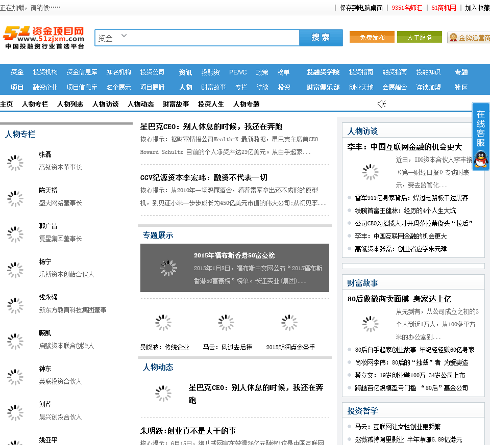 51资金项目网人物频道汇集众多投资融资专家,投资界名人,投资人,企业家,合伙人,天使投资人,创业者,CEO等专家人物的人物访谈,人物动态,人物专栏,财富故事,投资哲学。项目融资、找资金、选项目首选51资金项目网!