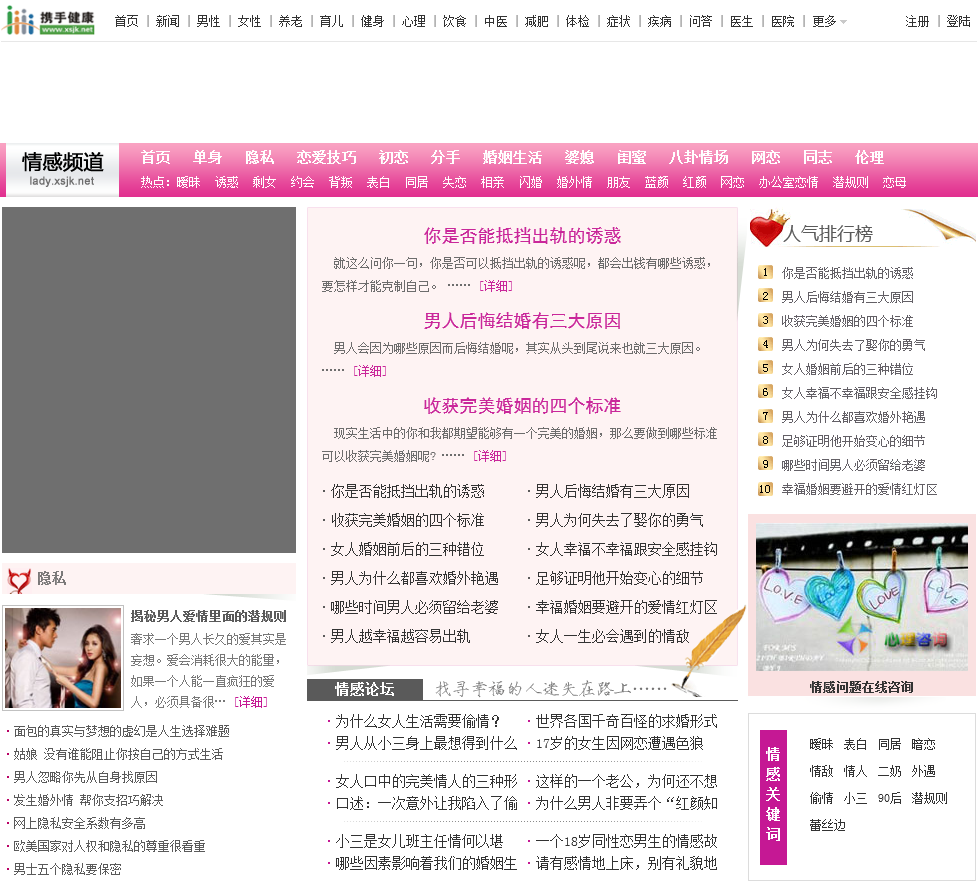 携手健康网情感频道于2020-06-15被0702投稿网收录,网站相关信息来自互联网或网友分享!由于(携手健康网情感频道)网站内容动态属性,时刻在变动,本站无法保证(携手健康网情感频道)网站内容真实可靠!请大家查阅时,谨慎选择、自辩真伪,感谢您的理解与支持。如果您在访问(携手健康网情感频道)时发现:网址失效、或网站存在非法等相关内容,请及时联系我们,我们会第一时间处理。