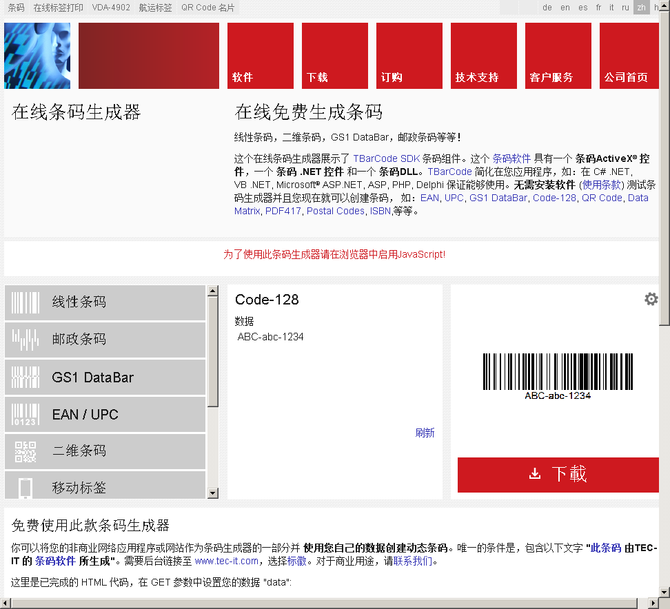 - 网站地址:barcode.tec-it.com