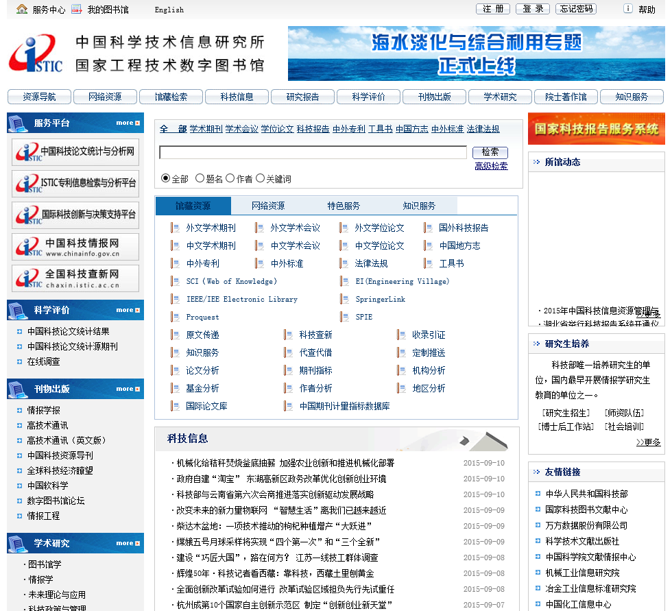 当前位置:主页 > 网站目录 > 中国科学技术信息研究所--国家工程技术数字图书馆 istic.ac.cn