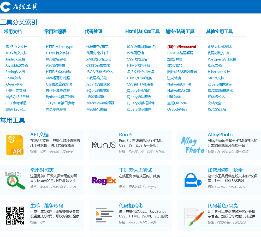 开源中国在线工具,ostools为开发设计人员提供在线工具,提供jsbin在线 CSS、JS 调试,在线 Java API文档,在线 PHP API文档,在线 Node.js API文档,Less CSS编译器,MarkDown编译器等其他在线工具