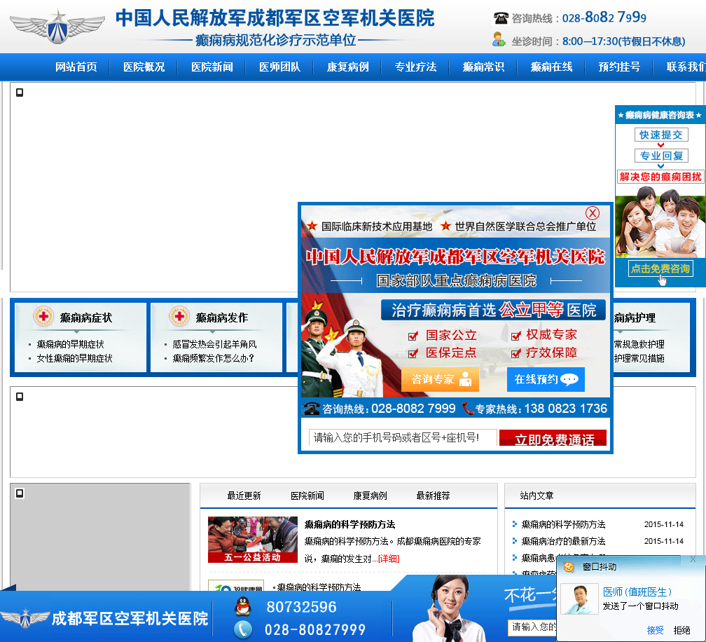 成都军区空军机关医院于2020-06-17被0702投稿网收录,网站相关信息来自互联网或网友分享!由于(成都军区空军机关医院)网站内容动态属性,时刻在变动,本站无法保证(成都军区空军机关医院)网站内容真实可靠!请大家查阅时,谨慎选择、自辩真伪,感谢您的理解与支持。如果您在访问(成都军区空军机关医院)时发现:网址失效、或网站存在非法等相关内容,请及时联系我们,我们会第一时间处理。