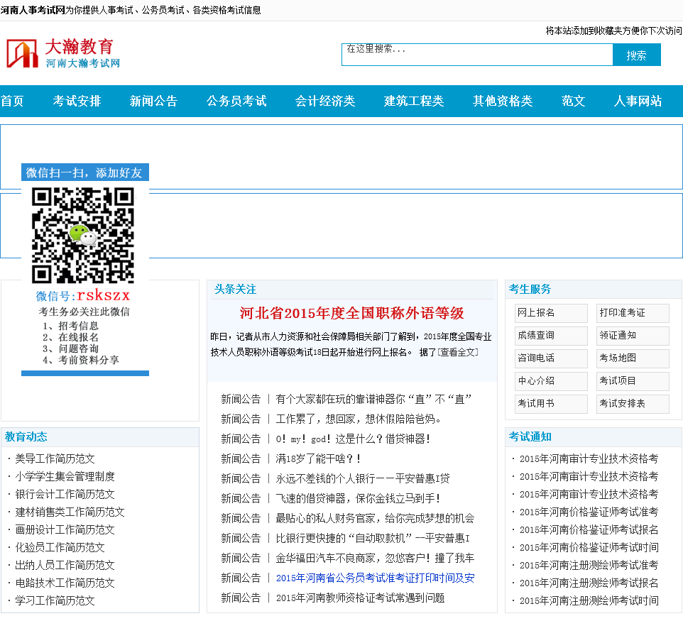 - 网站名称:河南人事考试网