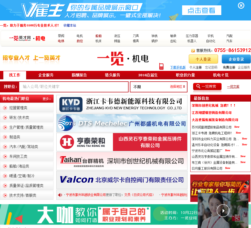 一览机电英才网于2020-06-18被0702投稿网收录,网站相关信息来自互联网或网友分享!由于(一览机电英才网)网站内容动态属性,时刻在变动,本站无法保证(一览机电英才网)网站内容真实可靠!请大家查阅时,谨慎选择、自辩真伪,感谢您的理解与支持。如果您在访问(一览机电英才网)时发现:网址失效、或网站存在非法等相关内容,请及时联系我们,我们会第一时间处理。