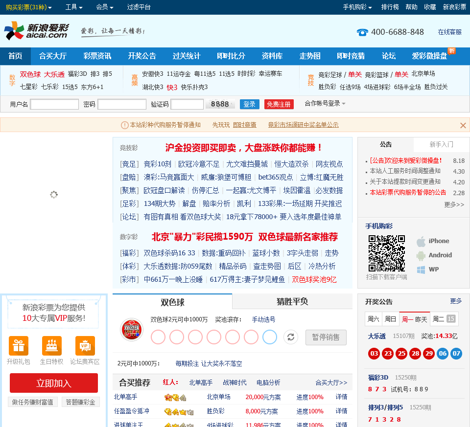 - 网站地址:sina.aicai.com