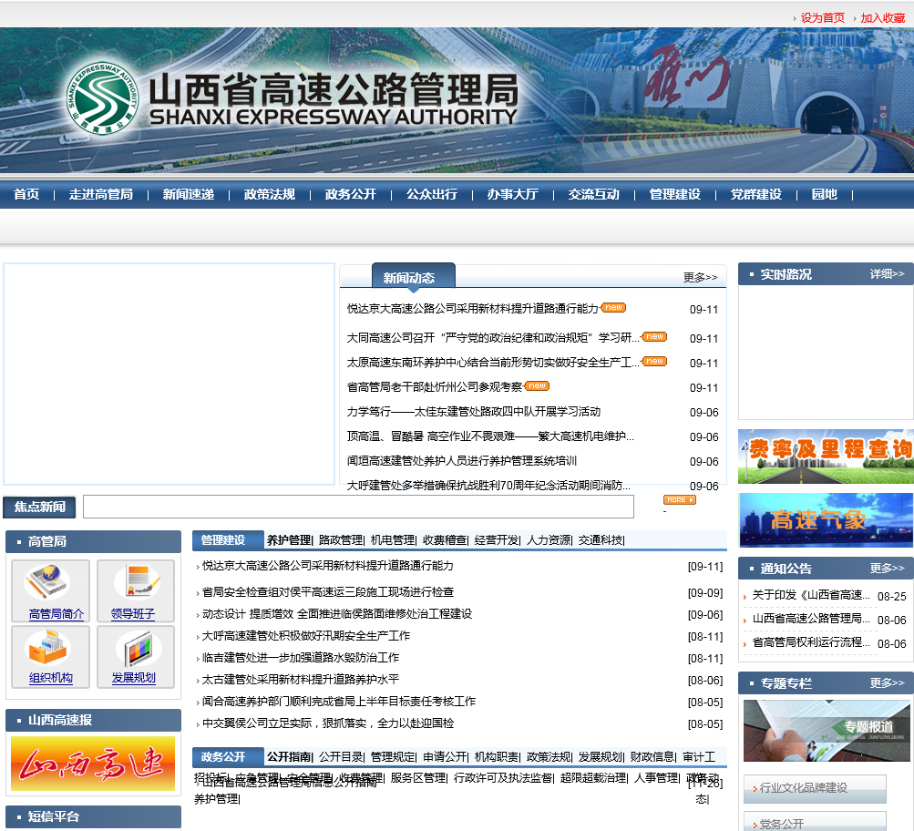当前位置:主页 > 网站目录 > 山西省高速公路管理局shanxihighway.com