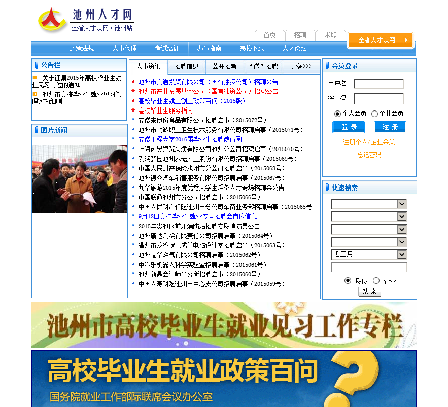 池州人才网于2020-06-20被0702投稿网收录,网站相关信息来自互联网或网友分享!由于(池州人才网)网站内容动态属性,时刻在变动,本站无法保证(池州人才网)网站内容真实可靠!请大家查阅时,谨慎选择、自辩真伪,感谢您的理解与支持。如果您在访问(池州人才网)时发现:网址失效、或网站存在非法等相关内容,请及时联系我们,我们会第一时间处理。