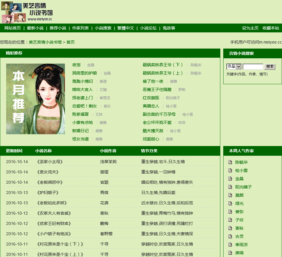 美艺言情小说书馆提供新港台原创,古代现代,穿越时空,校园都市等言情小说免费在线阅读