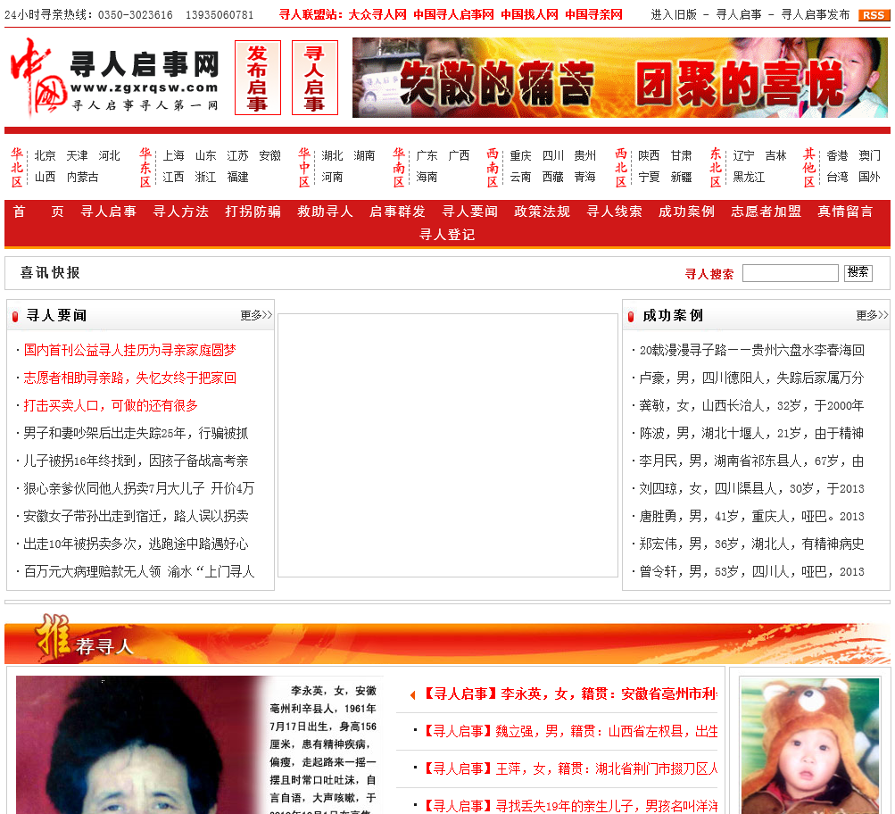 中国寻人启事网于2020-06-21被0702投稿网收录,网站相关信息来自互联网或网友分享!由于(中国寻人启事网)网站内容动态属性,时刻在变动,本站无法保证(中国寻人启事网)网站内容真实可靠!请大家查阅时,谨慎选择、自辩真伪,感谢您的理解与支持。如果您在访问(中国寻人启事网)时发现:网址失效、或网站存在非法等相关内容,请及时联系我们,我们会第一时间处理。