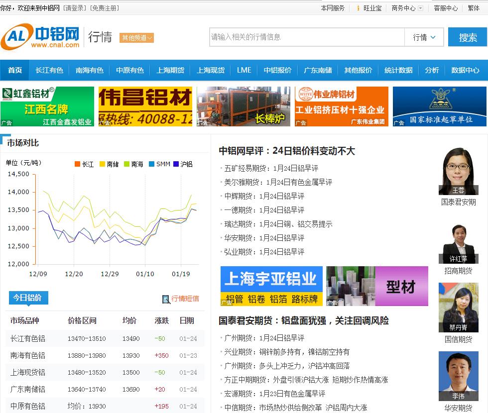 中铝网铝业行情于2020-06-21被0702投稿网收录,网站相关信息来自互联网或网友分享!由于(中铝网铝业行情)网站内容动态属性,时刻在变动,本站无法保证(中铝网铝业行情)网站内容真实可靠!请大家查阅时,谨慎选择、自辩真伪,感谢您的理解与支持。如果您在访问(中铝网铝业行情)时发现:网址失效、或网站存在非法等相关内容,请及时联系我们,我们会第一时间处理。